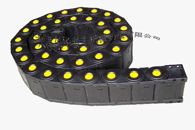 ? 拖鏈外形似坦克鏈,由眾多單元鏈節(jié)組成,鏈節(jié)之間轉(zhuǎn)動自如。相同系列的拖鏈內(nèi)高、外高、節(jié)距相同,拖鏈內(nèi)高、彎曲半徑R可有不同的選擇。單元鏈節(jié)由左右鏈板和上下蓋板組成,拖鏈每節(jié)都能打開,裝拆方便,不必穿線,打開蓋板后即可把電纜、油管、氣管等放入拖鏈內(nèi)。