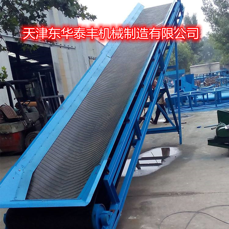 爬坡皮帶機(jī)輸送的角度較好不要超過(guò)13度,如果超過(guò)13度要在皮帶表面增加擋條或者皮帶要選擇帶有摩擦的草帶。在制作爬坡皮帶機(jī)時(shí)通常要在皮帶機(jī)兩側(cè)腰邊增加防護(hù)欄或在皮帶的側(cè)邊增加裾邊,以防止物體在輸送過(guò)程中跌落。